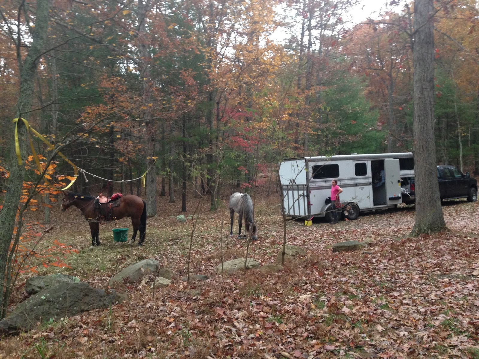 And now it is time for Poptart and Rogan to go load and eat dinner in the horse trailer in the rain...